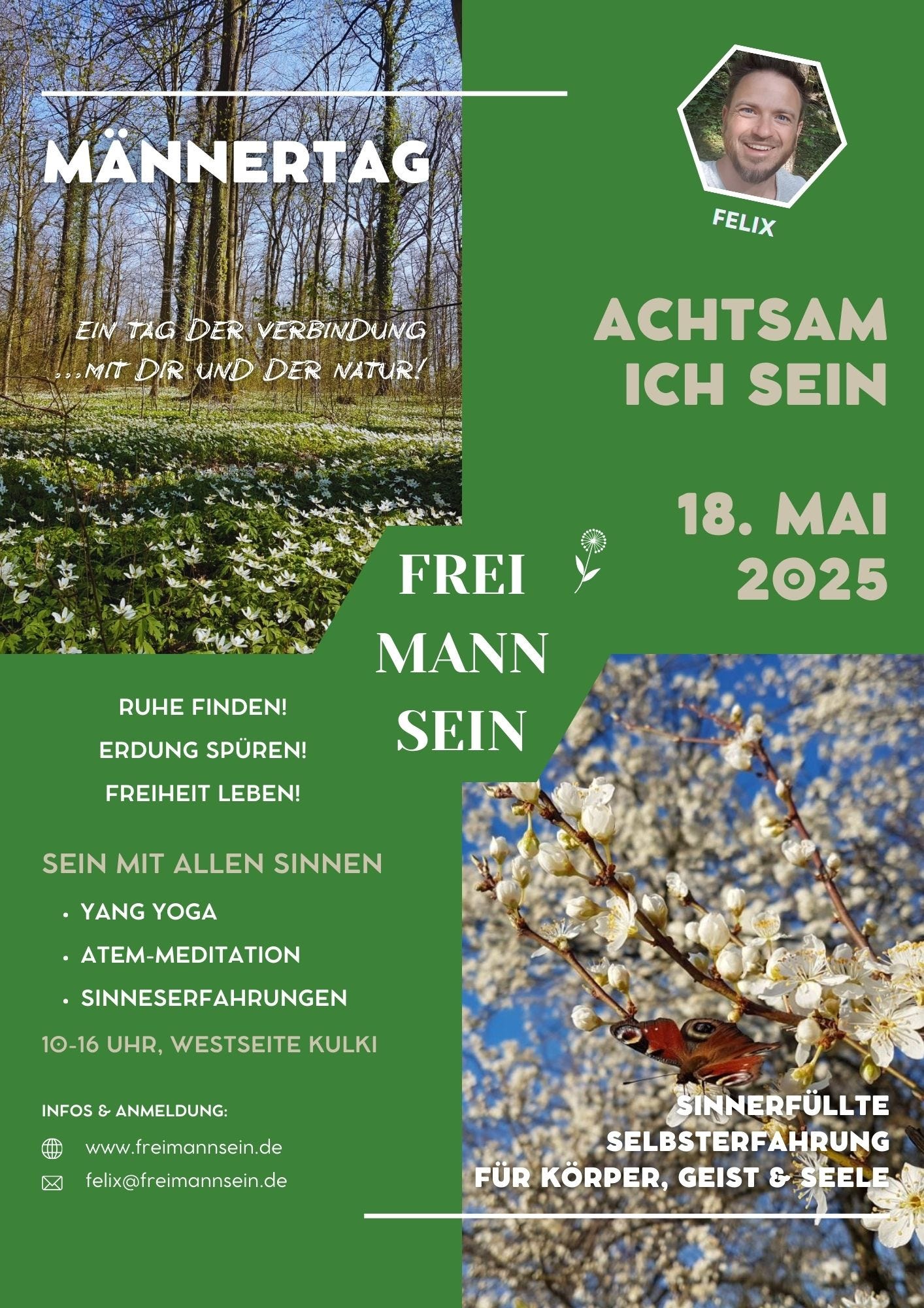 Für deine Anmeldung schicke mir bitte eine E-Mail mit deinem Namen und Telefonnummer an felix@freimannsein.de!Ich melde mich dann baldmöglichst bei dir! (-: